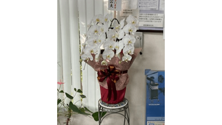 令和6年11月22日、近くの椿幼稚園の年長児の園児さんから、勤労感謝の日にちなんだ花束の贈呈を受けました。